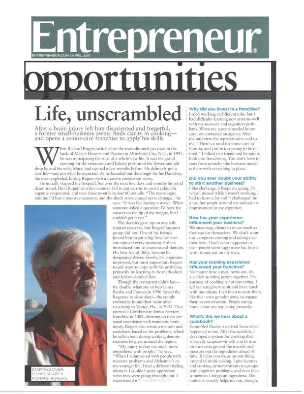 He eventually turned these coping strategies into a cookbook and memoir titled Scrambled Brains, which he now uses to give cooking demonstrations to others facing cognitive challenges.