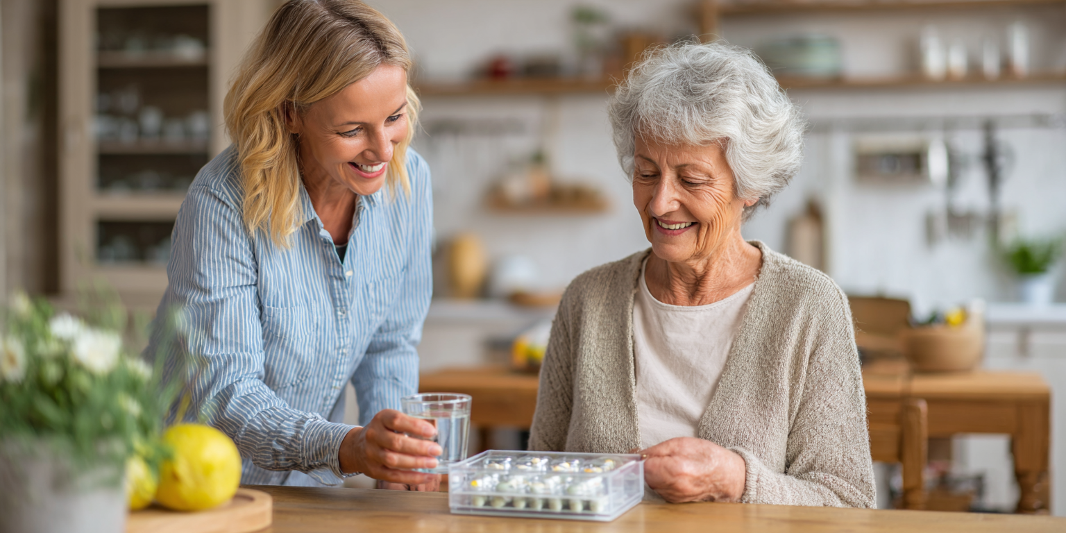 tungtruongmj_A_caregiver_gently_handing_a_senior_a_glass_of_w_6f71ea1b-5fc4-4ce9-87cf-568071540762_3 Published 08/01/2025 at 1536 × 768 in Medication Reminder ← Previous Next →